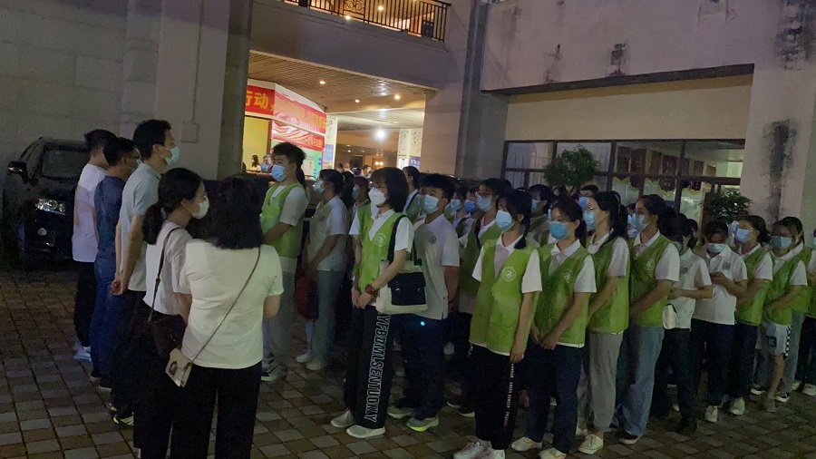 19:30分,beat365官网50名志愿者在图书馆前有序集合完毕,前往志愿服务地点。到达志愿服务地点之后,beat365官网全体志愿者以最快速度换装完毕,以最佳状态投入到志愿服务岗位当中。作为最靠“埔”的“夜行者”,全体志愿者一直默默坚守岗位。虽然汗流浃背,但是也丝毫不动摇为群众办实事的心。引导民众有序排队、协助核酸检测信息采集、解答民众问题等工作看似简单,却考验着全体志愿者的细心与耐心。