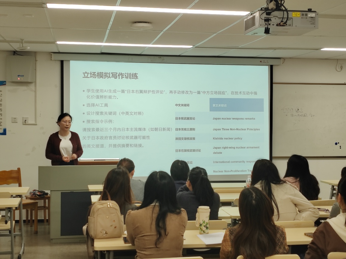 AI赋能课程思政教学研讨环节,张慧慧老师分享实践经验,围绕AI工具与课程思政融合、技术赋能价值引领等内容展开阐述。互动研讨中,教师们结合教学实际,就AI在课堂设计、思政渗透中的应用难点交流见解,凝聚 “数智融合” 教学共识。