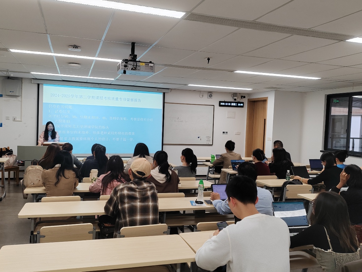 最后,程瑜瑜作总结发言。她强调,此次会议既是学期收尾工作部署,也是教学质量推进会,全体教师需以问题为导向落实整改,主动适应AI赋能等教学改革趋势,深化个性化培养与产教融合创新。此次会议兼具总结性与前瞻性,既梳理了教学短板、明确了期末重点,也为后续改革指明方向。英语系将以此次会议为契机,优化教学管理体系,深化教育创新,为培养新时代外语人才筑牢基础。