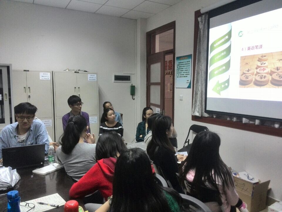 袁炜同学从挫折、健康、备考三个方面,以自身的经历鼓励广大学生,在复习或者考试中如何面对负面情绪化影响以及解决备考中遇到的困难,给予考生专业选择中肯意见。由曾帆从考研现状及动机、英语研究生专业设置、翻译硕士备考解读三个方面进行了前面阐述。他指出论文一定多读相关英语参考文献,最好能独立完成论文,对写作以及考研的作用非常大。专八与考研不冲突,准备考研的过程实际上就是准备专八的过程。两者相辅相成,共同促进。初试完二三月份可准备找工作,同时准备复试。关键在于心态和合理的时间规划。