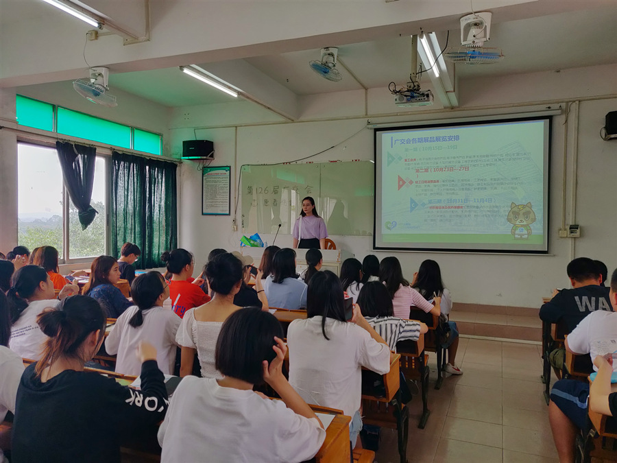 为大力弘扬文明服务和志愿服务精神,beat365官网在第126届广交会来临之际,经过面试的严格筛选,成功组建了70人的第126届广交会志愿服务队。并于10月13日在三教301开展了志愿者培训会。