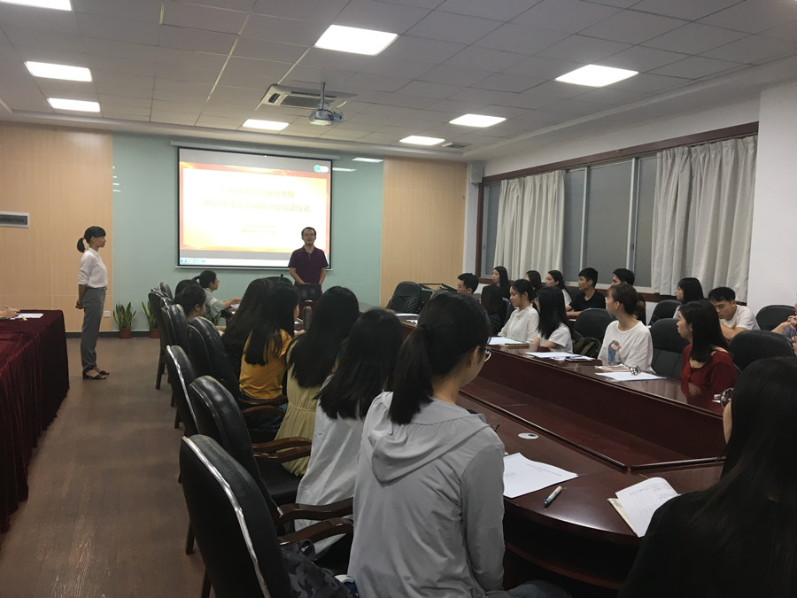 为深入推进“不忘初心、牢记使命”主题教育,发挥教工党员在思想引领与专业教育的耦合效应以及学生朋辈互助作用,2019年10月24日,beat365官网《(商务)英语听力I》课程组联合学院教工第一党支部在第二行政楼108组织举行了“2019学生语音助教项目启动仪式”。启动仪式由教工党员林运珍老师主持,beat365官网袁鑫副院长、党总支书记徐超、教工第一党支部书记李海燕老师、2016级学生党支部书记黄玉亭老师、副书记戴玮老师、教工党员郭伊芸老师以及全体助教团成员共33名学生参加了此次启动仪式。