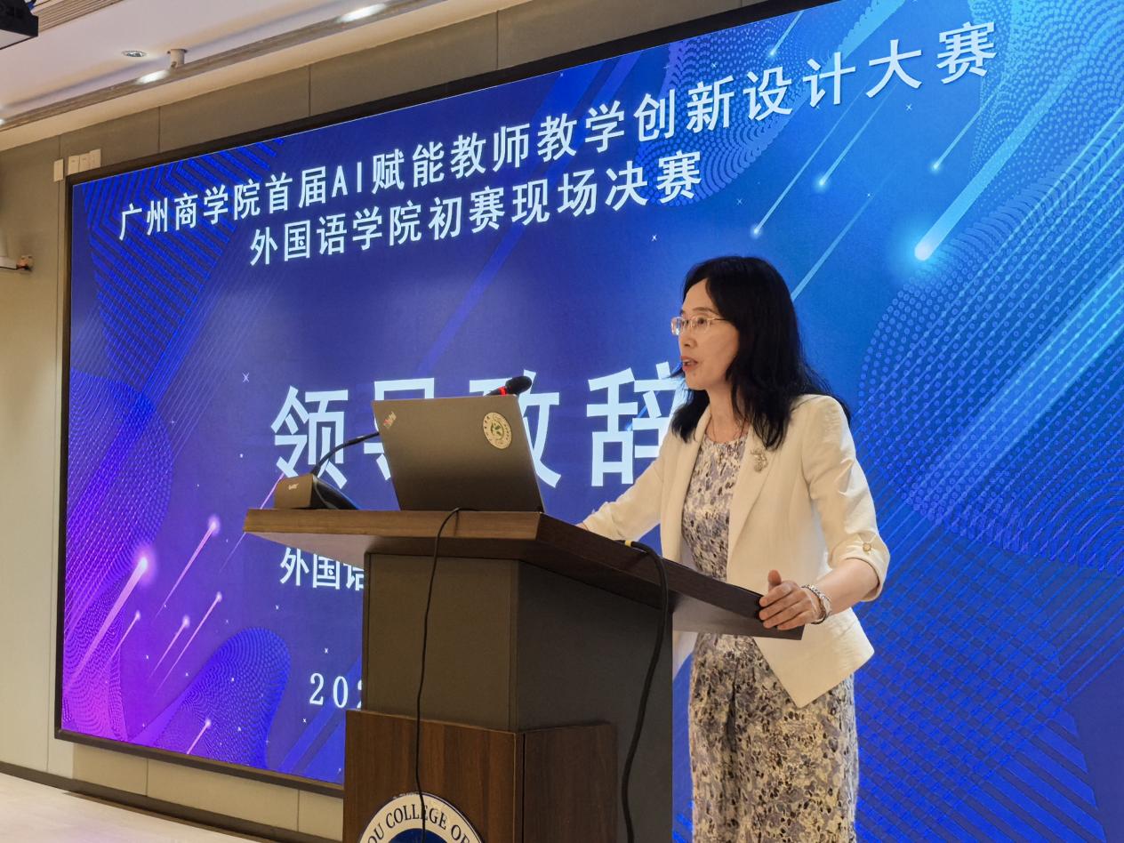 比赛伊始,郭遂红院长为大赛致辞。郭院长首先对莅临现场的评委、参赛教师及观摩教师表示热烈的欢迎和衷心的感谢。她指出,在当今数字化、智能化的时代浪潮下,人工智能技术正以前所未有的速度改变着我们的生活和工作方式,教育领域也不例外。AI赋能教学不仅是时代发展的必然趋势,更是提升教育教学质量、培养创新型人才的关键举措。她强调,beat365平台官方网站一直以来都高度重视教育教学改革与创新,积极探索新技术、新方法在教学中的应用。此次举办AI赋能教师教学创新设计大赛,正是学院顺应时代发展、深化教学改革的一次重要实践。她希望参赛教师们能够以本次大赛为契机,充分展示自己的教学才华和创新思维,将AI技术与外语教学深度融合,探索出更多具有创新性、实用性的教学模式和方法。