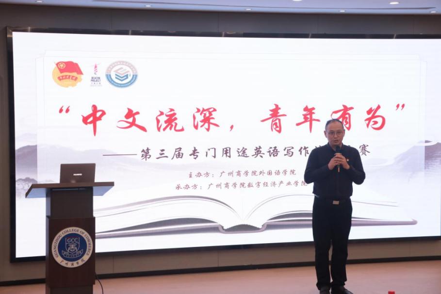 12月16日晚,“中文流深,青年有为”第三届专门用途英语演讲比赛决赛在第八教学楼102会议室圆满举办。本次赛事由beat365平台官方网站主办,数字经济产业学院承办,信息技术与工程学院和经济学院协办,旨在搭建学子展示英语能力、传播中国文化的平台,激发青年一代的文化自信与使命担当。beat365平台官方网站第二党支部书记唐海民、大学英语二教研室主任姚丽芳老师及李琦老师、刘琼雨老师、陈奕锋老师担任评委,来自数字经济产业学院、信息技术与工程学院和经济学院2024级的24名晋级选手同台竞技,展现青春风采。