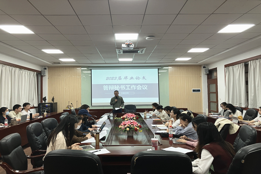 4月27日下午,全院毕业论文答辩工作会议上,袁鑫在总体上做了详细的工作部署,向各位老师们介绍了2023届答辩分组情况、答辩时间安排和评审答辩的基本要求。他强调,评审教师必须站在校外专家的角度审阅论文,把握论文合格的底线,对照《beat365平台官方网站毕业论文自查清单》,着重关注论文是否结构完整、逻辑明晰和文字通顺,围绕问题意识、研究思维、语言能力和规范意识四个方面来评审学生的论文。袁鑫就毕业论文答辩的工作规范和维普系统操作的注意事项做了详细说明。会议结束后各位老师们就学术论文和翻译实践报告评审的重点、难点和疑点进行了讨论。