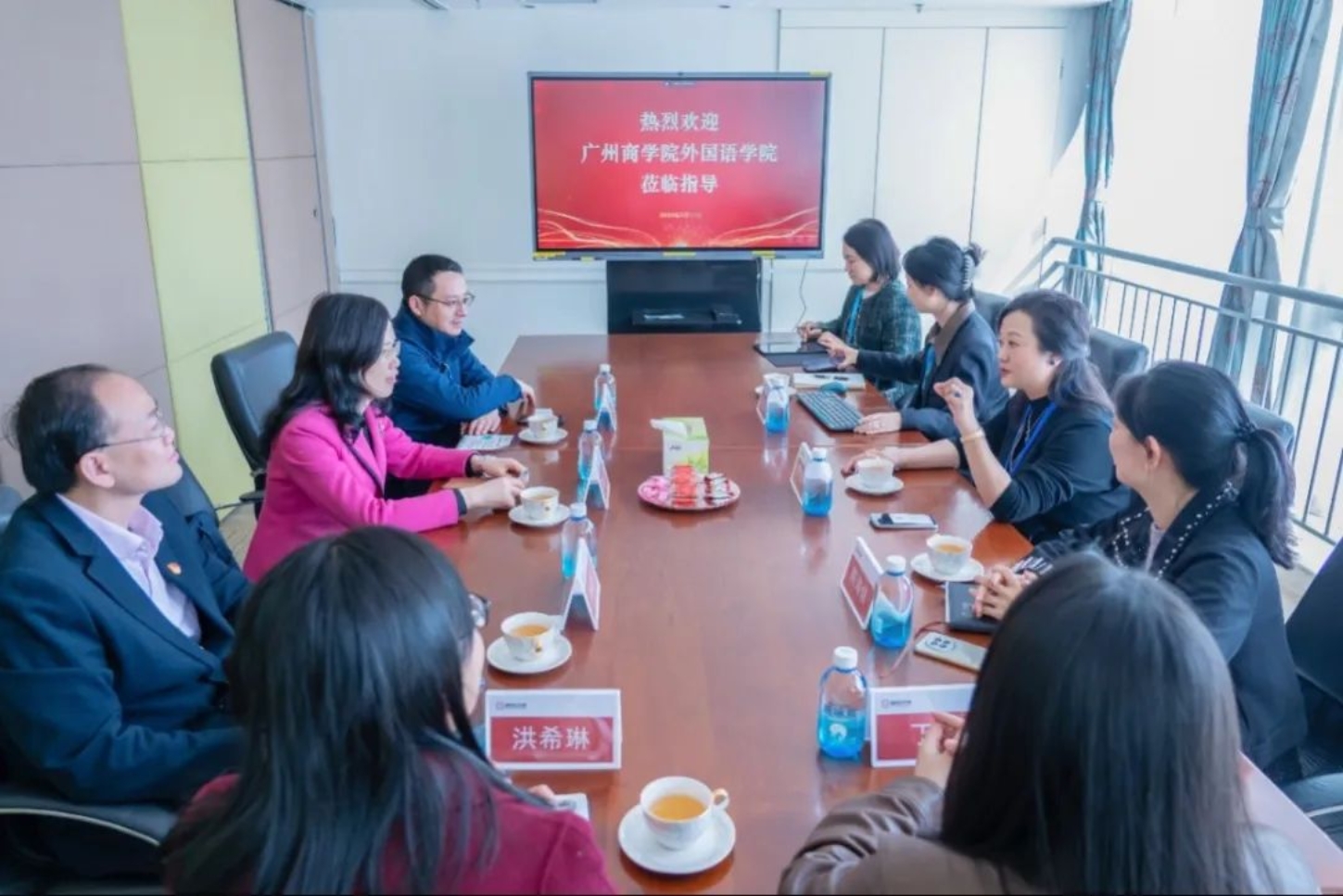 交流会上,郭遂红对公司的企业文化及发展前景给予了高度评价,同时介绍了学院人才培养、专业设置与学生实习就业情况,并提出在外贸语种、跨境电商、校企合作项目申报、共建产业学院等方面的合作意向。徐超围绕五大关键字“老、大、全、强、外”全面介绍了学院的发展历程、学科建设、办学特色等,并提出了探索校企党建合作模式的想法,希望通过搭建党建交流平台,发挥党建引领作用,推动校企合作向纵深发展。袁鑫则希望积极发挥学院外语优势和企业行业特色,共同探索构建教育共同体,打造“专业+”新型人才培养模式,提升应用型人才培养质量。