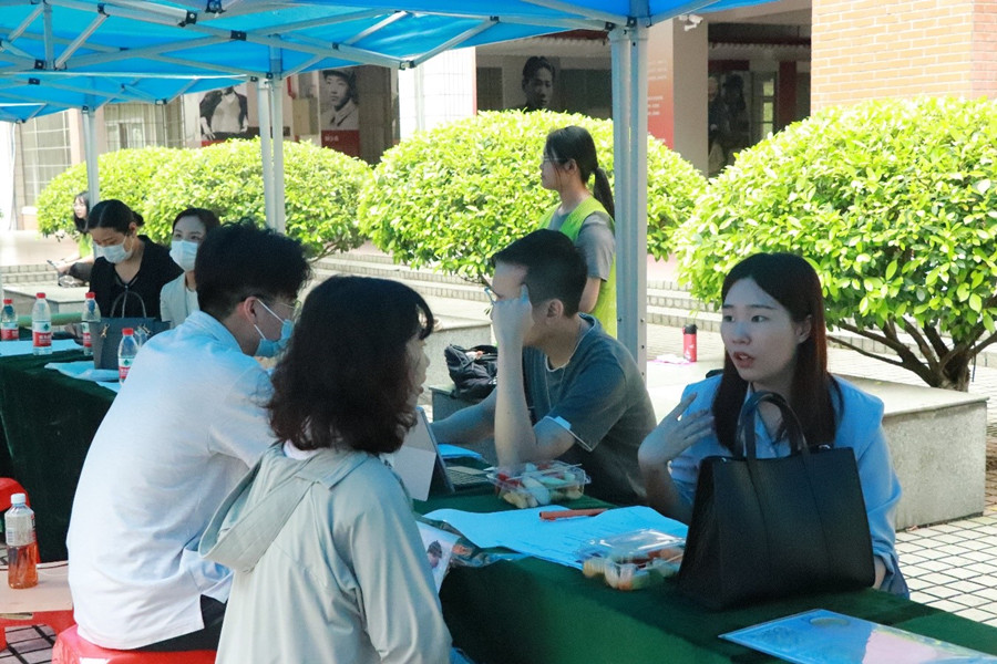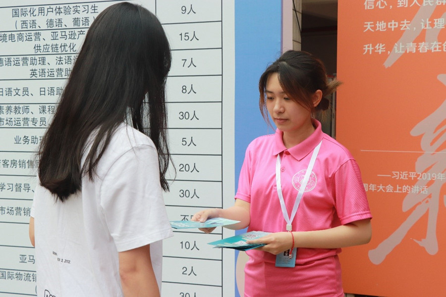 毕业生们以及有实习需求的同学们身着正式服装、携带个人简介踏进了招聘会的现场,从容地回答面试官的问题,展现广商学子的风采。beat365平台官方网站工作人员做好前期准备,协助面试官相关工作,维持现场秩序,传递着外院人的热情。