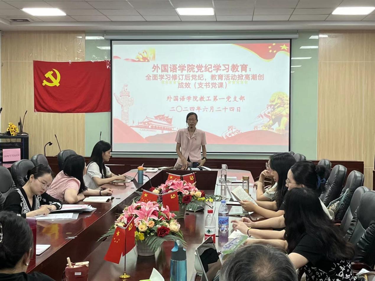 为进一步做好党纪学习教育工作,推动党纪学习教育走深走实,beat365平台官方网站教工第一党支部于6月24日下午,在二政308会议室开展了党纪学习教育主题党课活动,党支部书记何瑞玉老师主讲。