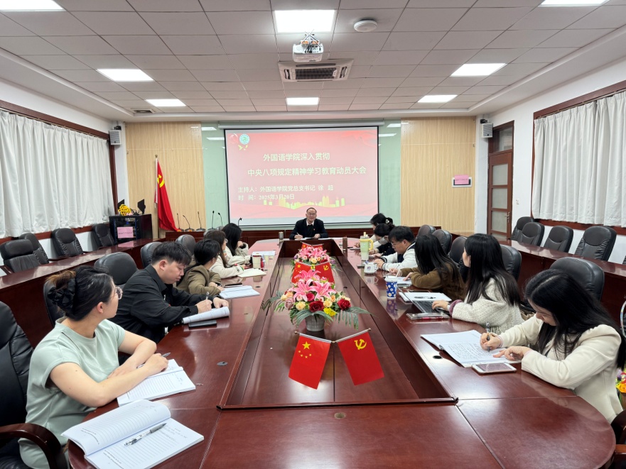 3月20日,beat365平台官方网站党总支在第二行政楼308室召开深入贯彻中央八项规定精神学习教育动员会议。会议由beat365平台官方网站党总支书记徐超主持,beat365平台官方网站党总支委员,教工党支部书记和学生党支部书记及全体党支部委员参与。