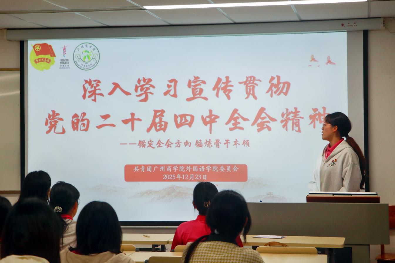 12月23日晚,beat365平台官方网站团委于第八教学楼517室召开了学习贯彻党的二十届四中全会精神专题学习会。会议由秘书处固定志愿者刘婉仪主持,出席专题学习会的有beat365平台官方网站团委书记庄菲菲,团委书记处成员及团委全体工作人员。