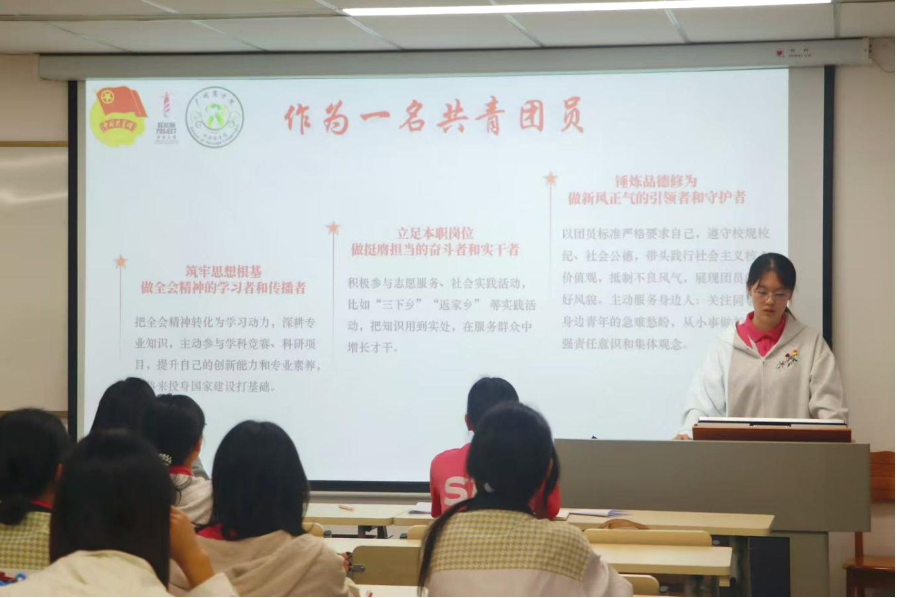 团委全体工作人员齐声奏唱中国共产主义青年团团歌,会议正式拉开序幕。